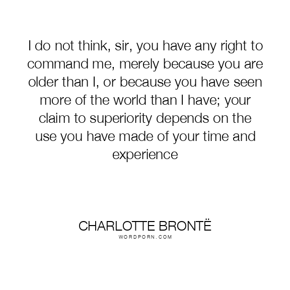 I do not think, sir, you have any right to command me, merely because you are older than I, or because you have seen more of the world than I have; your claim to superiority depends on the use you have made of your time and experience