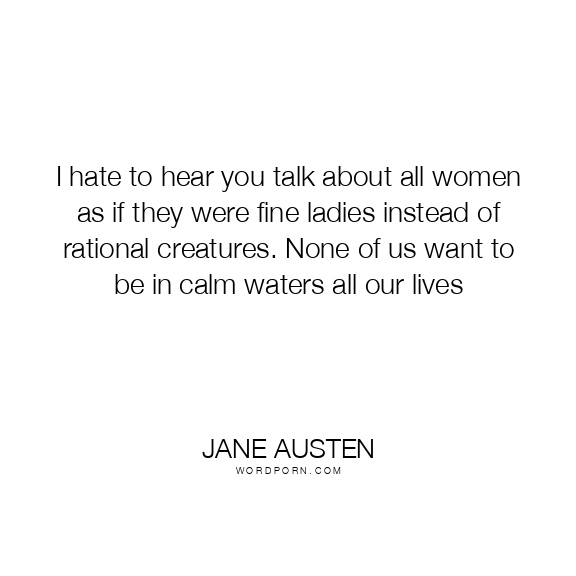 I hate to hear you talk about all women as if they were fine ladies instead of rational creatures. None of us want to be in calm waters all our lives