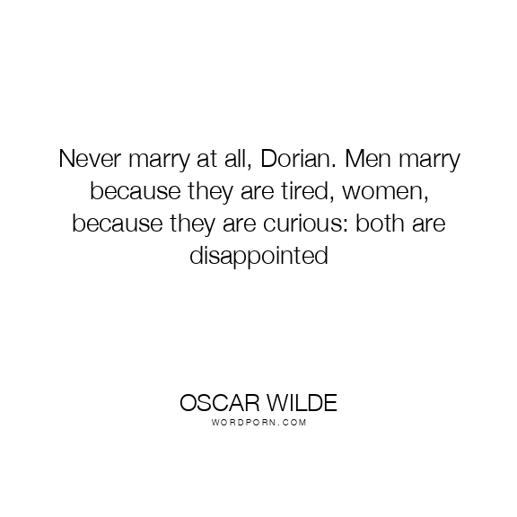 Never marry at all, Dorian. Men marry because they are tired, women, because they are curious: both are disappointed