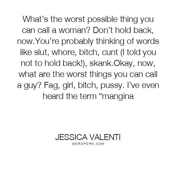 What’s the worst possible thing you can call a woman? Don’t hold back, now.You’re probably thinking of words like slut, whore, bitch, cunt (I told you not to hold back!), skank.Okay, now, what are the worst things you can call a guy? Fag, girl, bitch, pussy. I’ve even heard the term “mangina