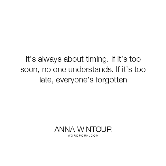 It’s always about timing. If it’s too soon, no one understands. If it’s too late, everyone’s forgotten