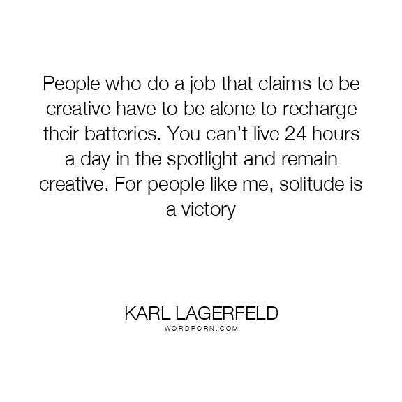 People who do a job that claims to be creative have to be alone to recharge their batteries. You can’t live 24 hours a day in the spotlight and remain creative. For people like me, solitude is a victory