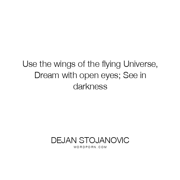 Use the wings of the flying Universe, Dream with open eyes; See in darkness