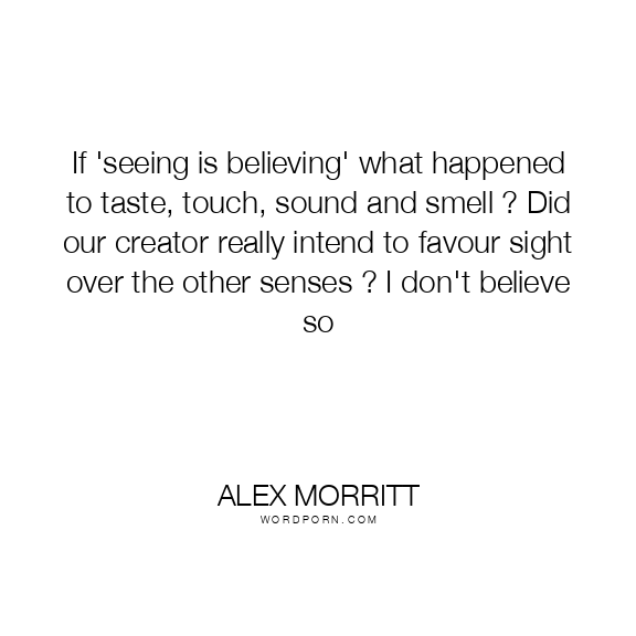 Alex Morritt quote. If 'seeing is believing' what happened to taste, touch, sound and smell ? Did our creator really intend to favour sight over the other senses ? I don't believe so