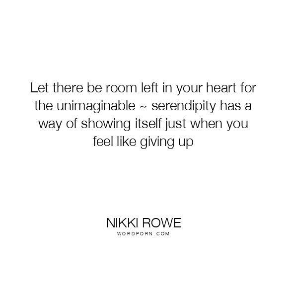 Nikki Rowe quote. Let there be room left in your heart for the unimaginable ~ serendipity has a way of showing itself just when you feel like giving up
