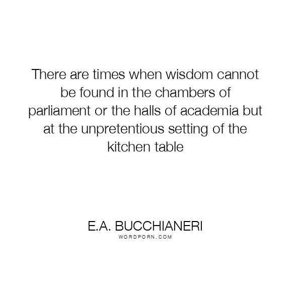E.A. Bucchianeri quote. There are times when wisdom cannot be found in the chambers of parliament or the halls of academia but at the unpretentious setting of the kitchen table