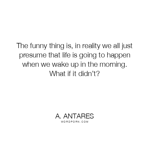 The funny thing is, in reality we all just presume that life is going to happen when we wake up in the morning. What if it didn’t?