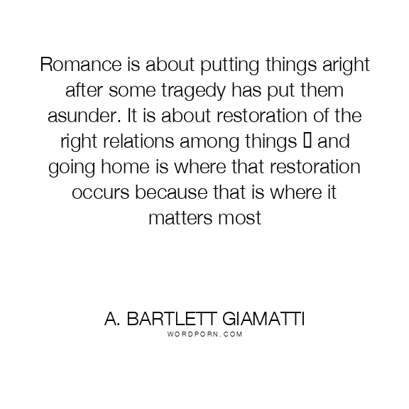 Romance is about putting things aright after some tragedy has put them asunder. It is about restoration of the right relations among things and going home is where that restoration occurs because that is where it matters most