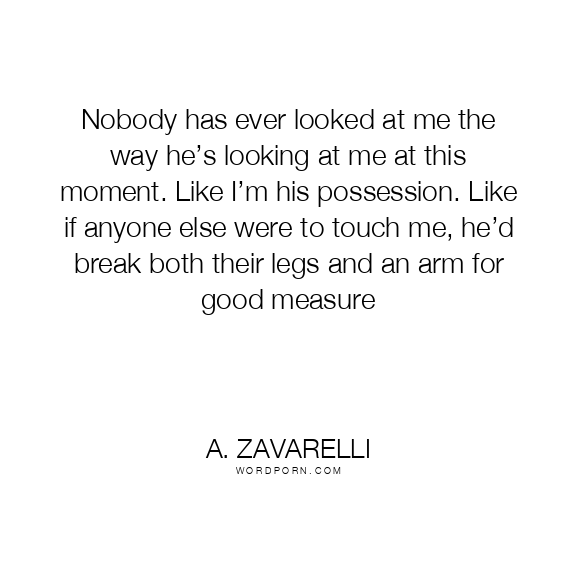 Nobody has ever looked at me the way he’s looking at me at this moment. Like I’m his possession. Like if anyone else were to touch me, he’d break both their legs and an arm for good measure