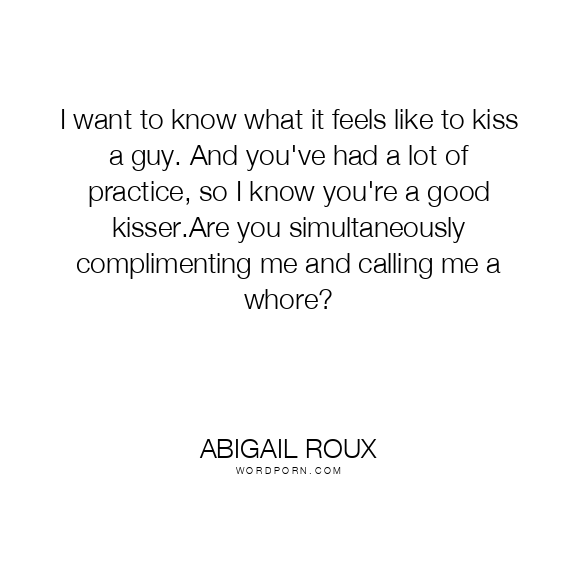 I want to know what it feels like to kiss a guy. And you've had a lot of practice, so I know you're a good kisser.Are you simultaneously complimenting me and calling me a whore?