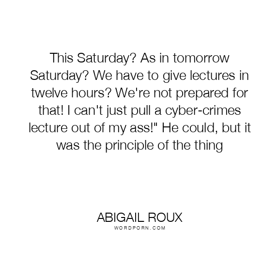 This Saturday? As in tomorrow Saturday? We have to give lectures in twelve hours? We're not prepared for that! I can't just pull a cyber-crimes lecture out of my ass!" He could, but it was the principle of the thing