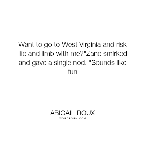 Want to go to West Virginia and risk life and limb with me?"Zane smirked and gave a single nod. "Sounds like fun