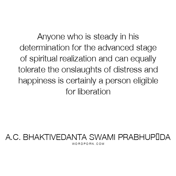 Anyone who is steady in his determination for the advanced stage of spiritual realization and can equally tolerate the onslaughts of distress and happiness is certainly a person eligible for liberation