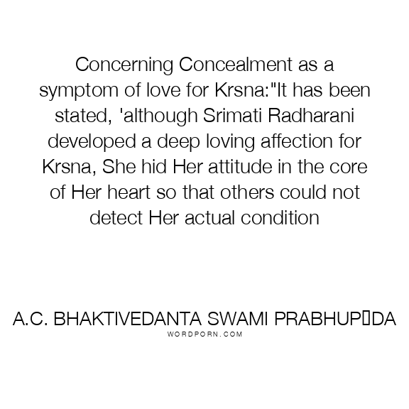 Concerning Concealment as a symptom of love for Krsna:"It has been stated, 'although Srimati Radharani developed a deep loving affection for Krsna, She hid Her attitude in the core of Her heart so that others could not detect Her actual condition