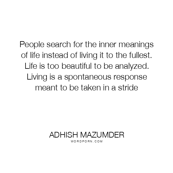 People search for the inner meanings of life instead of living it to the fullest. Life is too beautiful to be analyzed. Living is a spontaneous response meant to be taken in a stride