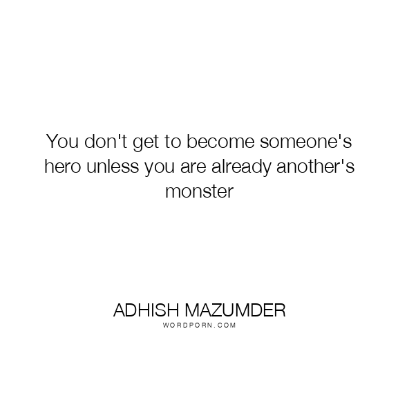 You don't get to become someone's hero unless you are already another's monster