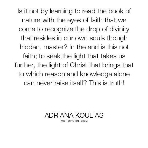 Is it not by learning to read the book of nature with the eyes of faith that we come to recognize the drop of divinity that resides in our own souls though hidden, master? In the end is this not faith; to seek the light that takes us further, the light of Christ that brings that to which reason and knowledge alone can never raise itself? This is truth!