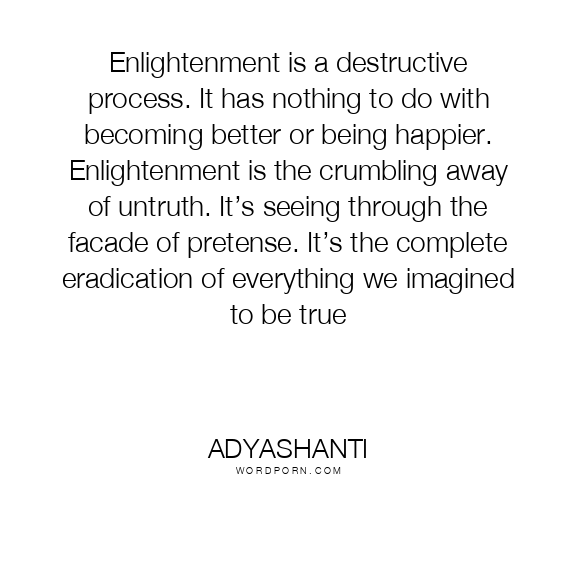 Enlightenment is a destructive process. It has nothing to do with becoming better or being happier. Enlightenment is the crumbling away of untruth. It’s seeing through the facade of pretense. It’s the complete eradication of everything we imagined to be true