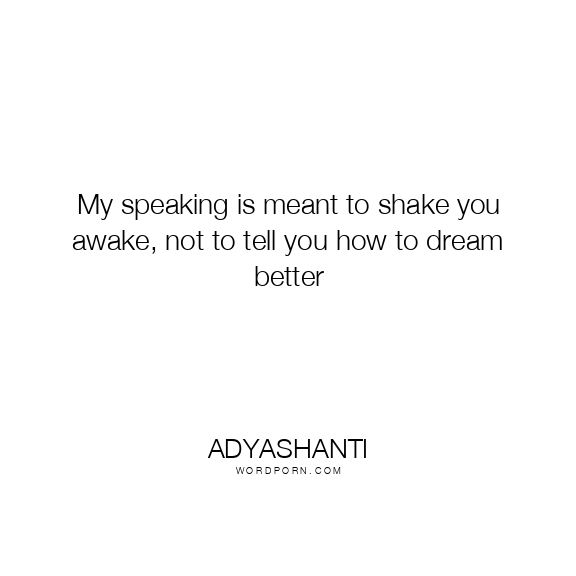 My speaking is meant to shake you awake, not to tell you how to dream better