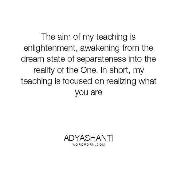 The aim of my teaching is enlightenment, awakening from the dream state of separateness into the reality of the One. In short, my teaching is focused on realizing what you are