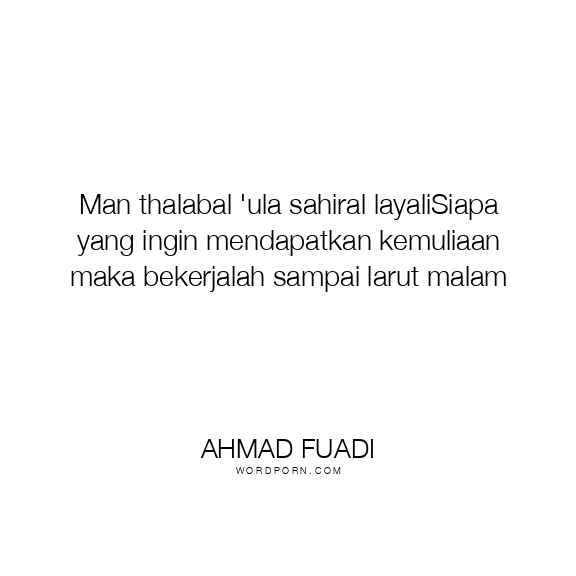 Man thalabal 'ula sahiral layaliSiapa yang ingin mendapatkan kemuliaan maka bekerjalah sampai larut malam