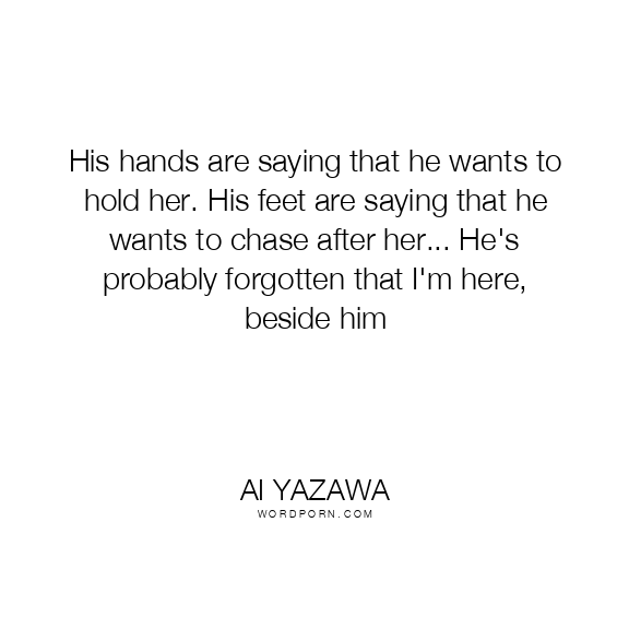 His hands are saying that he wants to hold her. His feet are saying that he wants to chase after her... He's probably forgotten that I'm here, beside him