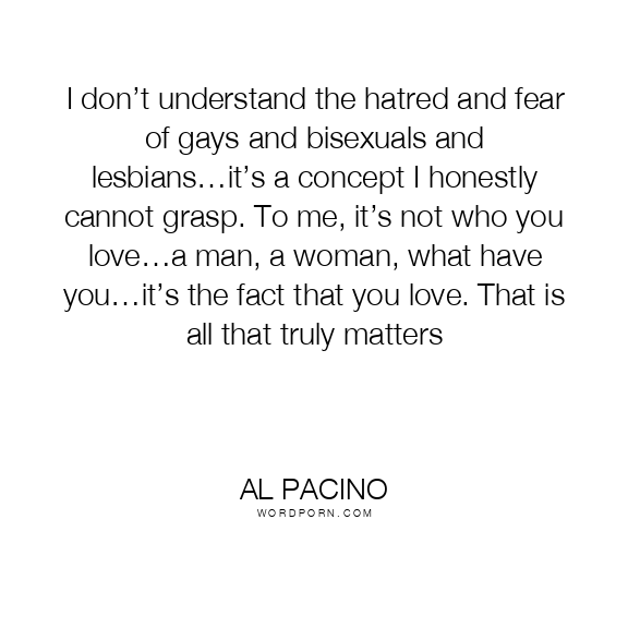 I don’t understand the hatred and fear of gays and bisexuals and lesbians…it’s a concept I honestly cannot grasp. To me, it’s not who you love…a man, a woman, what have you…it’s the fact that you love. That is all that truly matters