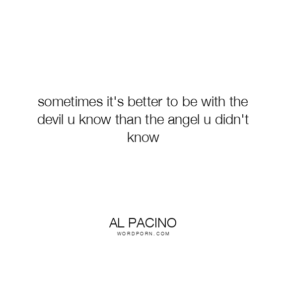sometimes it's better to be with the devil u know than the angel u didn't know