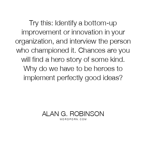 Try this: Identify a bottom-up improvement or innovation in your organization, and interview the person who championed it. Chances are you will find a hero story of some kind. Why do we have to be heroes to implement perfectly good ideas?