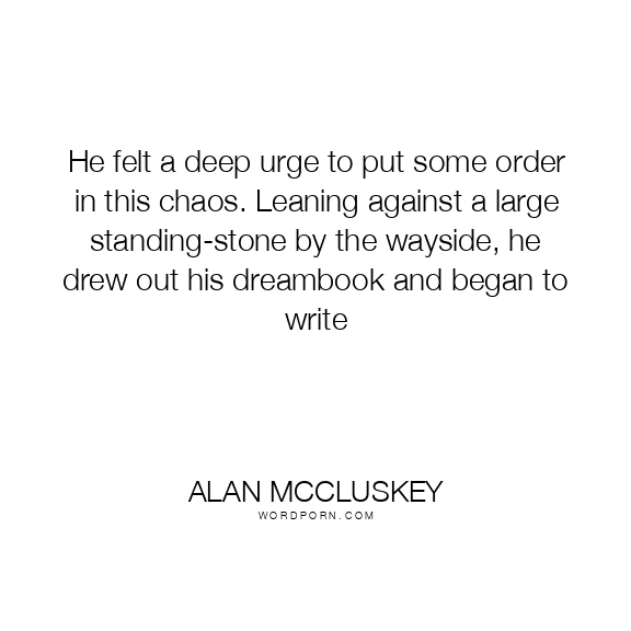 He felt a deep urge to put some order in this chaos. Leaning against a large standing-stone by the wayside, he drew out his dreambook and began to write