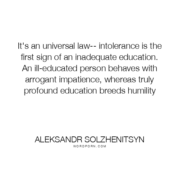 It's an universal law-- intolerance is the first sign of an inadequate education. An ill-educated person behaves with arrogant impatience, whereas truly profound education breeds humility