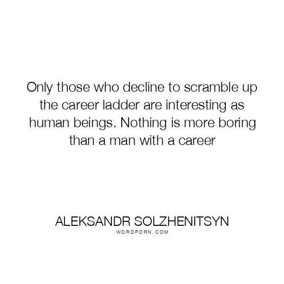 Only those who decline to scramble up the career ladder are interesting as human beings. Nothing is more boring than a man with a career