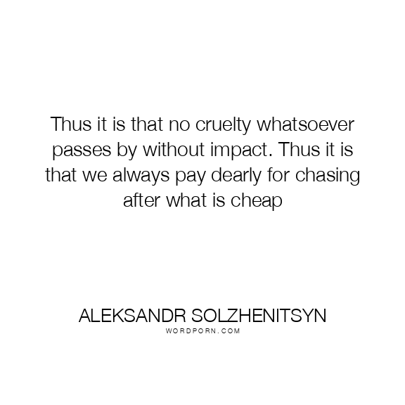 Thus it is that no cruelty whatsoever passes by without impact. Thus it is that we always pay dearly for chasing after what is cheap