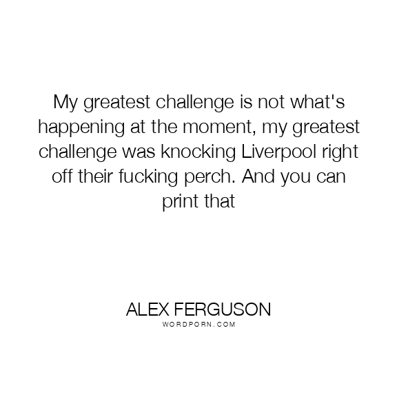 My greatest challenge is not what's happening at the moment, my greatest challenge was knocking Liverpool right off their fucking perch. And you can print that
