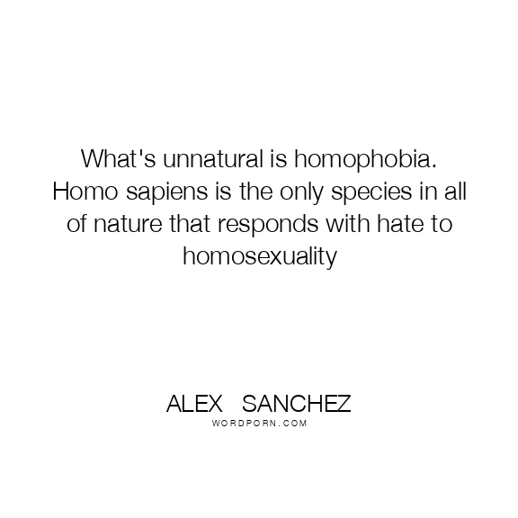 What's unnatural is homophobia. Homo sapiens is the only species in all of nature that responds with hate to homosexuality