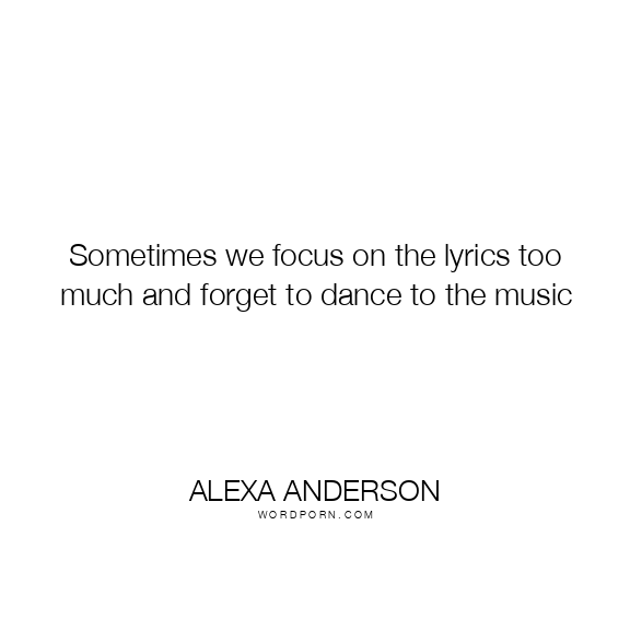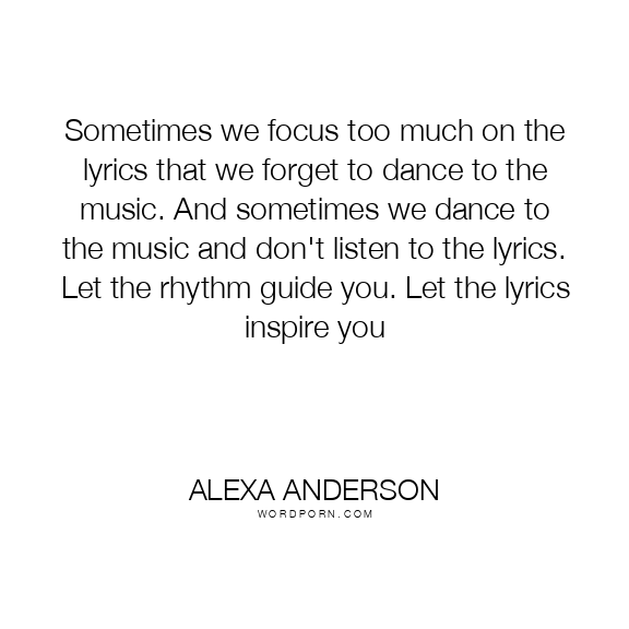 Sometimes we focus too much on the lyrics that we forget to dance to the music. And sometimes we dance to the music and don't listen to the lyrics. Let the rhythm guide you. Let the lyrics inspire you