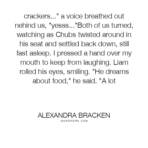crackers..." a voice breathed out nehind us, "yesss..."Both of us turned, watching as Chubs twisted around in his seat and settled back down, still fast asleep. I pressed a hand over my mouth to keep from laughing. Liam rolled his eyes, smiling. "He dreams about food," he said. "A lot