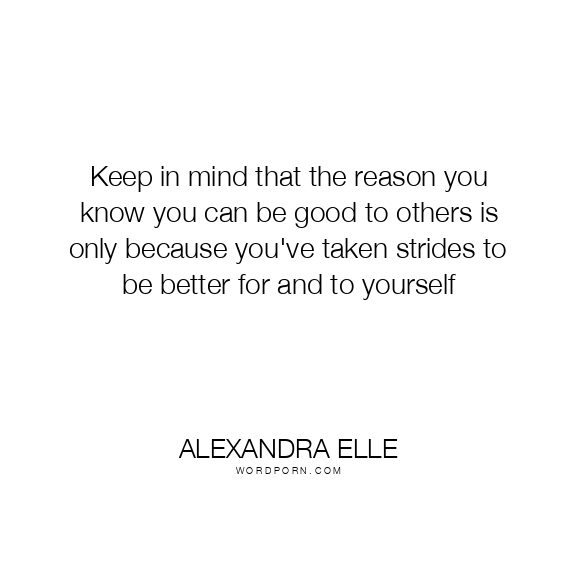 Keep in mind that the reason you know you can be good to others is only because you've taken strides to be better for and to yourself