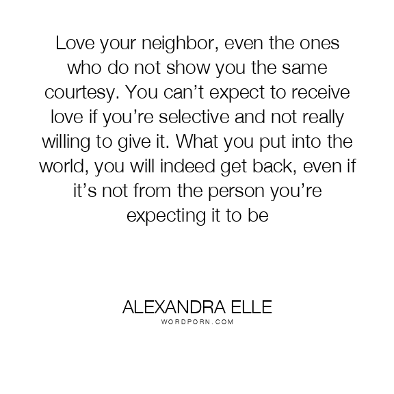 Love your neighbor, even the ones who do not show you the same courtesy. You can’t expect to receive love if you’re selective and not really willing to give it. What you put into the world, you will indeed get back, even if it’s not from the person you’re expecting it to be