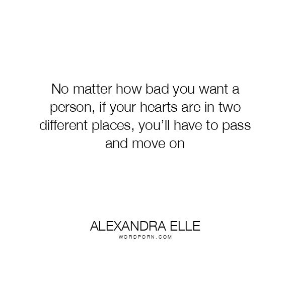 No matter how bad you want a person, if your hearts are in two different places, you’ll have to pass and move on