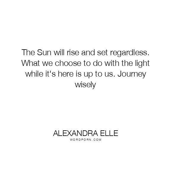 The Sun will rise and set regardless. What we choose to do with the light while it's here is up to us. Journey wisely