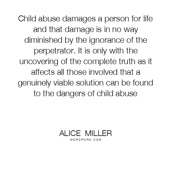 Child abuse damages a person for life and that damage is in no way diminished by the ignorance of the perpetrator. It is only with the uncovering of the complete truth as it affects all those involved that a genuinely viable solution can be found to the dangers of child abuse