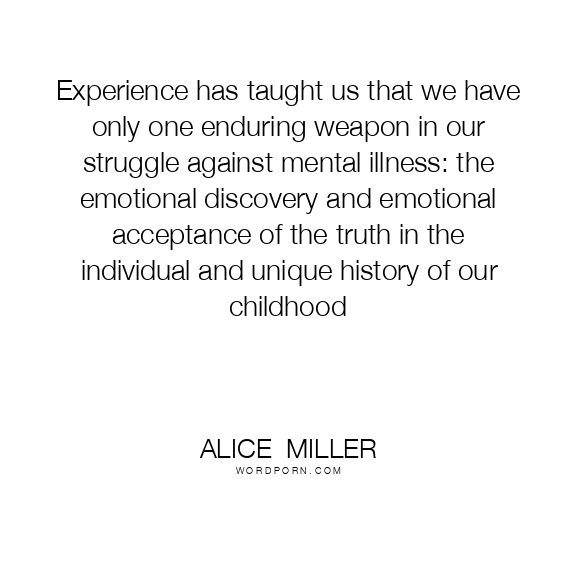 Experience has taught us that we have only one enduring weapon in our struggle against mental illness: the emotional discovery and emotional acceptance of the truth in the individual and unique history of our childhood