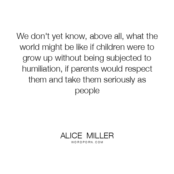 We don't yet know, above all, what the world might be like if children were to grow up without being subjected to humiliation, if parents would respect them and take them seriously as people