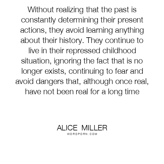Without realizing that the past is constantly determining their present actions, they avoid learning anything about their history. They continue to live in their repressed childhood situation, ignoring the fact that is no longer exists, continuing to fear and avoid dangers that, although once real, have not been real for a long time