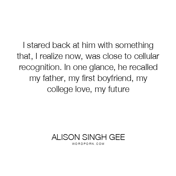I stared back at him with something that, I realize now, was close to cellular recognition. In one glance, he recalled my father, my first boyfriend, my college love, my future
