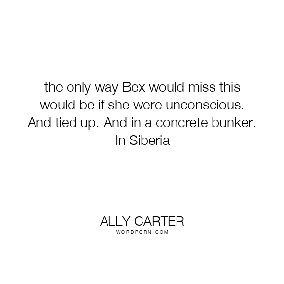 the only way Bex would miss this would be if she were unconscious. And tied up. And in a concrete bunker. In Siberia