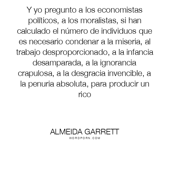 Y yo pregunto a los economistas políticos, a los moralistas, si han calculado el número de individuos que es necesario condenar a la miseria, al trabajo desproporcionado, a la infancia desamparada, a la ignorancia crapulosa, a la desgracia invencible, a la penuria absoluta, para producir un rico