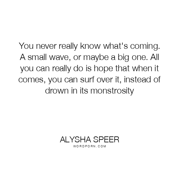 You never really know what's coming. A small wave, or maybe a big one. All you can really do is hope that when it comes, you can surf over it, instead of drown in its monstrosity