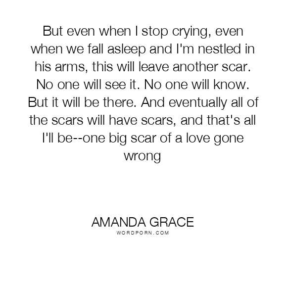 But even when I stop crying, even when we fall asleep and I'm nestled in his arms, this will leave another scar. No one will see it. No one will know. But it will be there. And eventually all of the scars will have scars, and that's all I'll be--one big scar of a love gone wrong